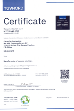 Certificate, CeramTec Suzhou LTD.